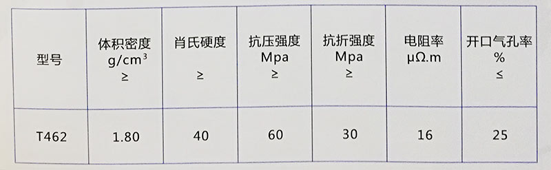 T462 適用于有色、黑色金屬型材連續鑄造具有高強高密各向同性等優良性能, 抗折強度高達30MPa,抗壓強度高達60MPa,體積密度高達1.8g/cm. 主要應用于有色、黑色型材連續鑄造生產的石墨制品, 還應用于熔煉金屬及合金的石墨增塌,其他用途的石墨原件石墨器血等,適用于干摩擦條件用途廣泛。